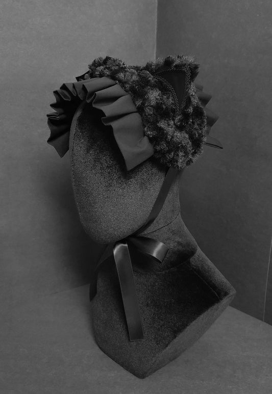 Black Cat Swirl Fur and Ruffles Headdress ~ Made to Order
