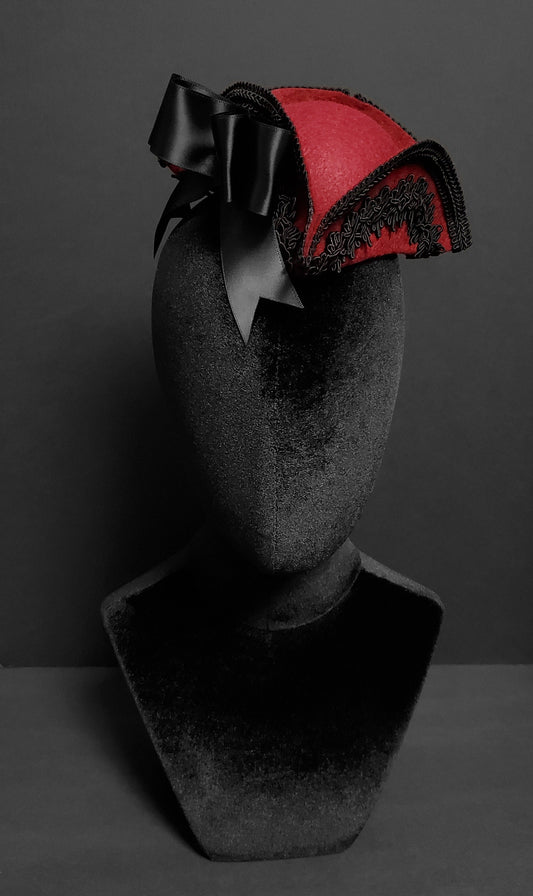 Black and Garnet Red Mini Tricorn Pirate Hat ~ Made to Order