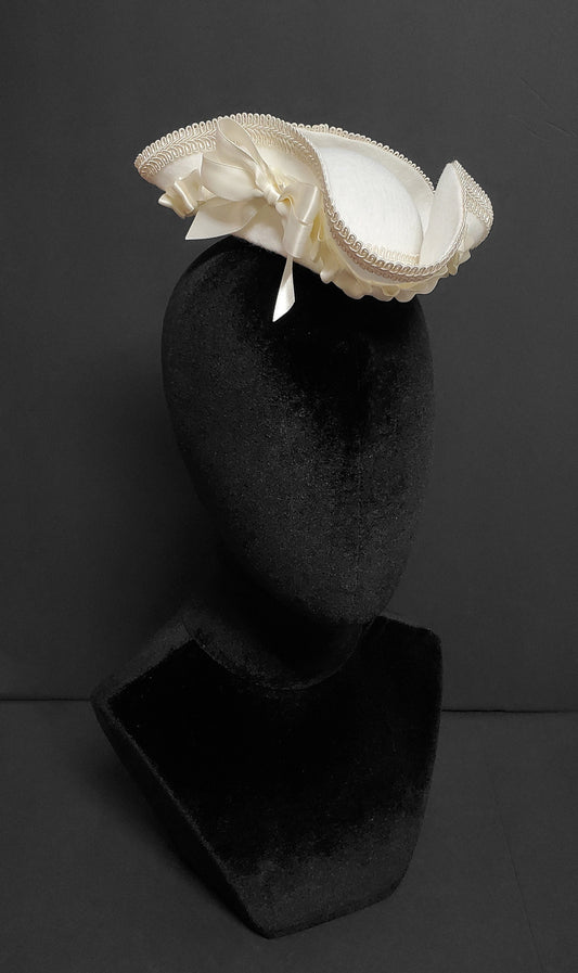 Beautiful White and Ivory Wedding Mini Tricorn Pirate Hat ~ Made to Order