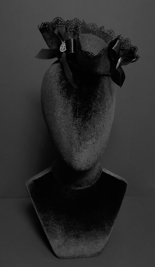 Black Mini Ruffled Tricorn Pirate Lass Hat ~ Made to Order